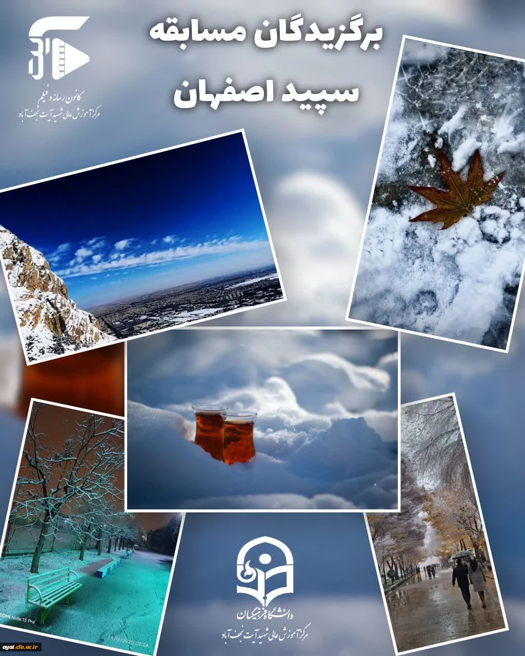گروه هیئت داوران پس از ۴ دور بررسی تخصصی عکس ها و ارزیابی براساس پارامترهای عناصر ترکیب بندی، خلاقیت، وضوح و فوکوس عکس، و میزان ارتباط موضوع با اصفهان و فضای دانشگاه، به اتفاق آرا عکس های زیر را واجد کسب رتبه برتر اعلام نمودند: رتبه های برگزیده: فاطمه دیانی هما مسجدی محمد حسن مرادی فاطمه اصغری هومن لیراوی