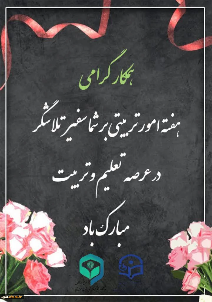 امید است در این مسیر ارزشمند، با تلاش، تعهد و ایمان، منشأ آثار ماندگار در تربیت نسل آینده باشید و همواره در راه اعتلای تعلیم و تربیت این سرزمین موفق و سربلند بمانید.
